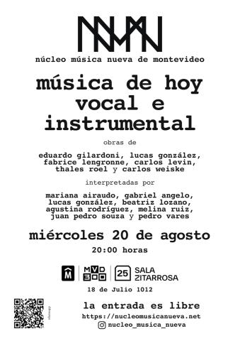 Concierto 788: música de hoy vocal e instrumental Lee más sobre Concierto 788: música de hoy vocal e instrumentalMiércoles 20 de Agosto de 2025 20:00 Sala Zitarrosa