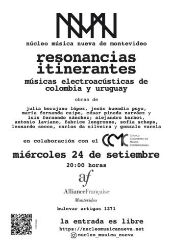 Concierto 789:Resonancias itinerantes Lee más sobre Concierto 789:Resonancias itinerantesMiércoles 24 de Septiembre de 2025 20:00 Alianza Francesa
